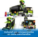 De LEGO City Gametoernooi truck biedt veel mogelijkheden voor fantasierijk spelen. Open de trailer om een podium te onthullen met 2 gamestations en een stadionscherm met leuke 'animatie'-functie, plus een trofee voor de winnaar en coole merchandise voor LEGO City's eSport-fans. Voeg de presentator en minifiguren van gamers toe en het toernooi kan beginnen!