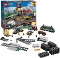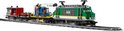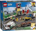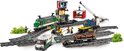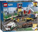 Bevestig alle wagons aan de locomotief, klim in de cabine, blaas op de fluit en ga op pad! Lever de goederen op tijd en houd LEGO City draaiende!