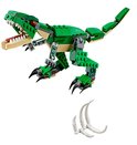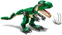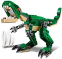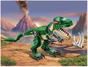 - De set bestaat uit een 3-in-1 T-Rex met feloranje ogen, verstelbare ledematen en kop, enorme klauwen en een muil vol scherpe tanden die open kan. Inclusief prooi in de vorm van een ribbenkast om zelf te bouwen.