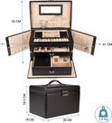 Ik ben zeer tevreden over deze sieradendoos. De doos is compact wanneer alle compartimenten dicht zijn, dus je kan het gemakkelijk opbergen. De binnenkant van de doos is mooi afgewerkt met een zachte voering. Een leuke bonus aan deze juwelendoos is het kleine uitneembare doosje (met spiegel). Handig om mee te nemen op reis! Er is voldoende plaats om allerlei juwelen op te bergen, van horlogehouders tot hangers voor je oorbellen en ruime compartimenten voor kettingen. Een echte aanrader dus!