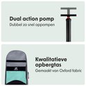 Het SUP Board komt inclusief pomp. In ongeveer 5 minuten heb je het board opgepompt. Als je klaar bent met suppen, is het board weer in ongeveer 5 minuten leeggepompt. Je kan er ook voor kiezen om een elektrische pomp te gebruiken. Deze wordt niet meegeleverd.