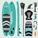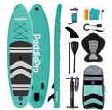LifeGoods PaddlePro SUP Board - met Zitje - Opblaasbaar Paddle Board - Complete Set - Max. 150KG - 320x81cm - Mintgroen/Zwart