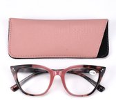 Lichtgewicht trendy leesbril ovaal montuur,soft vlak bij neus en oren. . Gemeleerd havanna Cerise lila. Met bijpassend etui. Sterkte +2,5