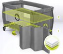 Campingbedje 4 in 1 – Baby Bed / Inklapbare Box / Reisbedje MET Bodemverhoger (Rugvriendelijk Ontwerp) – MET comfort MATRAS – 60x120 cm – 0-36 maanden / tot 15 kg – Zij-ingang – Wielen – Transporttas – Babybed Babybox Ledikant – LIONELO STEFI PLUS