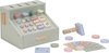 - Inhoud verpakking: 1 houten kassa met scanner, speelgoedgeld, betaalautomaat en creditcard