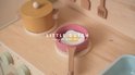 Wat ben je aan het koken, kleine chef-kok? Bereid de lekkerste gerechten in deze schattige houten keuken. Verwen je familie of je favoriete poppen en knuffels met een zelfgemaakte maaltijd. Met de twee pannen en het keukengerei ben je er klaar voor om een meesterkok te worden! De keuken biedt alles wat je maar kunt bedenken. Je kunt een taart bakken in de oven, wat groenten koken op het fornuis en, niet te vergeten, je handen wassen in de gootsteen. Er is zelfs een peper- en zoutstel en een kast om je boodschappen in op te bergen. Vanaf 3 jaar.
