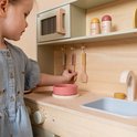 Peuters houden ervan om volwassenen en hun dagelijkse routines na te bootsen. Deze keuken zal een droom zijn die uitkomt voor kleine chef-koks. Het inspireert rollenspel, creativiteit, motoriek en verbeelding. De stevige houten keuken in moderne kleuren creëert een heerlijke speelruimte in een kinderkamer maar staat ook prachtig in een woonkamer. Combineer met de weegschaal of broodrooster en maak het rollenspel compleet.