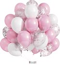 Luna Balunas 50 Stuks Pastel Roze Wit Latex Ballonnen Helium Confetti Verjaardag versiering Meisje - Baby Shower Feest decoratie Eco friendly FSC