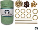 Macramé Pakket | 200 METER | Incl. Handleiding | Mintgroen | Starter Set | Ringen | Kralen |Stokken | Macramé Touw | 3mm | 100% Katoen | Macramé | Decoratie | DIY | Doe Het Zelf | Wandkleed | Dromenvanger | Plantenhanger | Tassen | TheOldOmen |