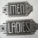 Mooie set art deco toiletbordjes met opschrift ladies,men en toilet. Gemaakt van gietijzer met zilverkleurige opdruk. Afmetingen 14.5x1x6 centimeter