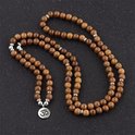 Mala ketting van 108 houten kralen. Variant hanger; Ohm 8mm Houten Kralen