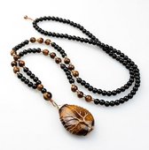 Mala ketting 108 kralen hout Ohm - Armband Tibetaanse Rozenkrans Vrouwen / Mannen - Boeddha - Yoga - Meditatie - Buddha - Om - houten kralenketting