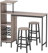 Multifunctioneel inzetbaart: Op de 3 planken kun je o.a. uw glazen neerzetten en al je wijn, borden, kopjes of placemats heb je binnen één handbereik. Of het nu voor uw eigen huisbar, voor de keuken of als eettafel is, u kunt deze set aanpassen aan uw behoeften. Deze set is ook ideaal voor op het terras, balkon of in je bistro. Met deze moderne set creëer je in elke kamer een echt bargevoel. De bartafel nodigt uit om langer te blijven hangen - geniet van een uitgebreid ontbijt of 's avonds een glas wijn met vrienden! Dankzij de 3 planken biedt de bartafel voldoende opbergruimte voor glazen, wijn, decoratie of andere zaken.
