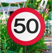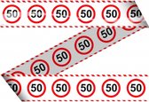 Markeerlint/Afzetlint 50 jaar verjaardag thema met stopbord. Leuk versier- of markeerlint, bestaande uit een aaneenschakeling van stopborden met daarin het getal 50. Het 50 jaar markeerlint is ongeveer 15 meter lang en 10 cm hoog per stuk. Leeftijd feestartikelen en versieringen voor Abraham en Sarah.