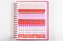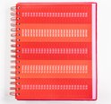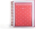 De nieuwe Mascha planner 2024 heeft een mooie rode stoffen kaft met hartjes die in de stof gedrukt zijn. De binnenkant heeft een mooie afwisseling tussen rode en roze tinten.