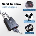 De meegeleverde slijtvaste hoes beschermt niet alleen de ketting tegen de elementen, maar voorkomt ook krassen op je voertuig. Deze hoes draagt bij aan zowel de duurzaamheid van het slot als het behoud van de esthetiek van je motor of scooter.