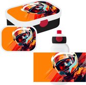 Leuke set, maar na 2 weken gebruik brak het rode klepje van de broodtrommel al af.