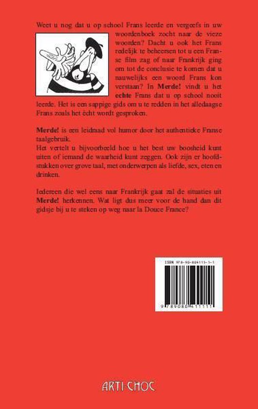 Weet u nog dat u op school Frans leerde en vergeefs in uw woordenboek zocht naar de vieze woorden? Dacht u ook het Frans redelijk te beheersen tot u een Franse film zag of naar Frankrijk ging om tot de conclusie te komen dat u nauwelijks een woord Frans kon verstaan? In MERDE! vindt u het échte Frans dat u op school nooit leerde. Het is een sappige gids om u te redden in het alledaagse Frans zoals het ècht wordt gesproken.