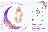 Mijlpaaldeken In Nederlands - Milestone Deken Baby - Kraamcadeau Jongen - Kraamcadeau Meisje - Inclusief Frames - Thema Maan - 130x100 cm