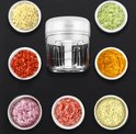 Veelzijdig in gebruik: Het is ideaal voor het hakken van groenten, noten, kruiden en andere zachte tot middelharde ingrediënten (het apparaat is niet ontworpen om harde materialen zoals ijs te verwerken).