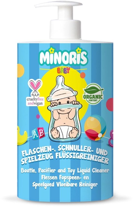 Minoris Baby Flessen-, Fopspenen- & Speelgoedreiniger – Biologische, Natuurlijke & Minerale Bestanddelen | Hypoallergeen, Geurvrij, Verwijdert Melk- en Formuleresten | Borstkolfreiniger | Vegan 500ml