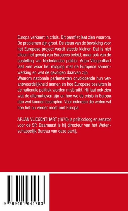 Europa verkeert in crisis. Dit pamflet laat zien waarom. De problemen zijn groot. De steun van de bevolking voor het Europese project wordt steeds kleiner. Dat is niet alleen het gevolg van Europees beleid, maar ook van de opstelling van Nederlandse politici. Arjan Vliegenthart laat zien waar het misging met de Europese samenwerking en wat de gevolgen daarvan zijn.