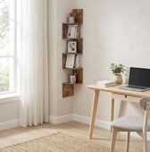 MIRA Home – Wandrek Hoek – Industrieel Wandrek – Vintage – Bruin Hout – 20x20x127,5 cm