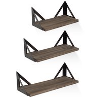MIRA Home - Wandplank hout - Wandplank zwevend - 3 Stuks - Vintage - Hout/Metaal - Donkerbruin - 67x21.6x20.6