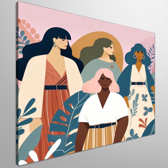 Modern dikke dames schilderij | Volumineuze dames in hedendaagse kunst: een moderne ode aan schoonheid | Kunst - 100x100 centimeter op Canvas | Foto op Canvas