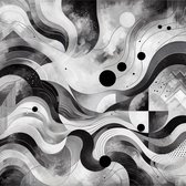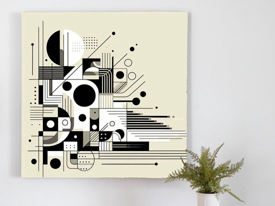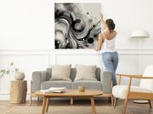 Modern zwart wit schilderij | Abstracte monochrome compositie: een eigentijdse interpretatie van contrastrijke kunst | Kunst - 40x40 centimeter op Canvas | Foto op Canvas