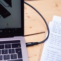 Kabel die degelijk aanvoelt en goed werkt. Ik gebruik 'm om mijn laptop aan mijn computermonitor te koppelen, waarbij de laptop tegelijkertijd beeld doorgeeft en wordt opgeladen. Dat is wel ideaal.
