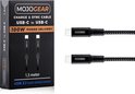 MOJOGEAR USB C naar USB C kabel 100W - 1,5 meter - Extra Sterk - Snellader geschikt voor o.a. iPhone 15, iPhone 16, Samsung, Oppo, iPad Pro, Macbook, smartphones, telefoons, laptops - Zwart/donkergrijs