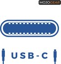 Aan allebei de kanten van de kabel zit een USB-C-aansluiting. De kabel ondersteunt snelladen tot 100W (20V/5A) via USB Power Delivery, in combinatie met een geschikte USB-C PD oplader. Daarmee is de MOJOGEAR USB-C-kabel ook geschikt voor het opladen van laptops.