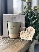 Mok - Beker - Koffie - Trots - Keramiek - lint: "Speciaal voor jou" - Cadeauverpakking