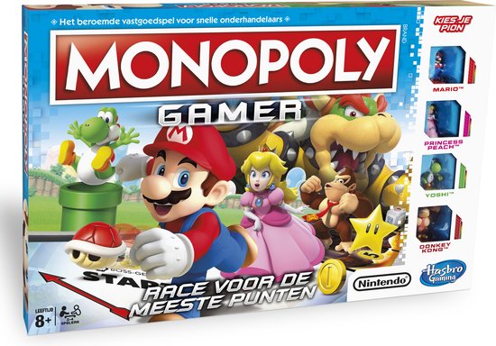 Het speelbord lijkt op monopoly, straten verzamelen, langs start komen, de gevangenis. Maar voor de rest werkt het spel anders dan je gewend ben, waardoor dit spel ook leuk is om aan te schaven als je de traditionele versie al in de kast heb staan. Tevens vinden wij het een voordeel dat het spel niet eindeloos kan blijven doorgaan zo als het origineel. Binnen een uur weet je wie de winnaar. Vooral leuk voor mensen die wel eens Nintendo spellen spelen met Mario, Yoghi, Peach of Donky Kong in de hoofdrol.