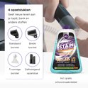 Een fijn pluspunt is dat er al een flesje schoonmaakmiddel wordt meegeleverd. Ik ben begonnen met een stoel en een kussen van de bank. De stoel leek redelijk schoon, maar het water dat terugkwam was verrassend bruin — een goed teken dat hij echt diep reinigt. De bank had een paar hardnekkige, oude vlekken en zelfs met alleen water kwam het grootste deel daarvan al los. Met schoonmaakmiddel verwacht ik de laatste restjes ook volledig te verwijderen.