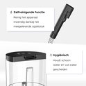 De schoonwatertank heeft een fijne capaciteit, maar is wat lastiger volledig leeg te gieten — er blijft altijd een klein laagje achter. Met een droge doek heb je dat er gelukkig zo uit.