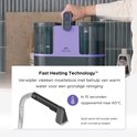 De Motionflow Tapijtreiniger onderscheidt zich door zijn snelle opwarming in slechts 15 seconden. Deze innovatieve functie, gekoppeld aan een stabiele output van 60 graden Celcius, verhoogt niet alleen de efficiëntie van de reiniging, maar garandeert ook veiligheid en snelheid door het gebruik van warm water. Hierdoor wordt een diepere en effectievere reiniging mogelijk, wat de algehele prestaties van de tapijtreiniger aanzienlijk verbetert.