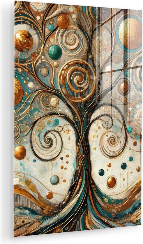 MuchoWow® Glasschilderij 120x180 cm - Schilderij acrylglas - Levensboom - Boom - Abstract - Modern - Foto op glas - Muurdecoratie woonkamer - Wanddecoratie slaapkamer - Schilderijen