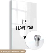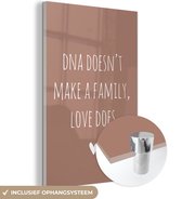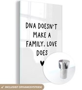 MuchoWow® Glasschilderij 80x120 cm - Schilderij acrylglas - Engelse quote "DNA doesn't make a family, love does" met een hartje op een witte achtergrond - Foto op glas - Schilderijen