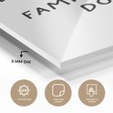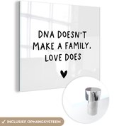 Glasschilderij - Engelse quote "DNA doesn't make a family, love does" met een hartje op een witte achtergrond - Woonkamer - Slaapkamer