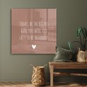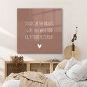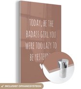 Glasschilderij - Engelse quote "Today, be the badass you were to lazy to be yesterday" voor een bruine achtergrond - Woonkamer - Slaapkamer