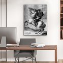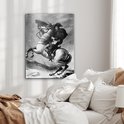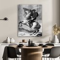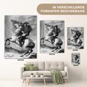 Glasschilderij - Illustratie van Napoleon Bonaparte in het zwart-wit op een paard - Woonkamer - Slaapkamer