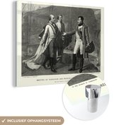 MuchoWow® Glasschilderij 60x80 cm - Schilderij acrylglas - Illustratie van Napoleon Bonaparte in het zwart-wit op een paard - Foto op glas - Schilderijen