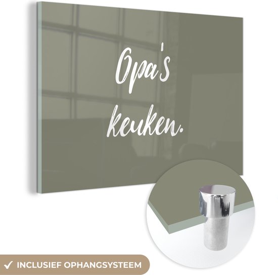 MuchoWow® Glasschilderij 150x100 cm - Schilderij acrylglas - Quotes - Spreuken - Opa's keuken - Opa - Keuken - Foto op glas - Schilderijen