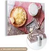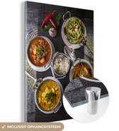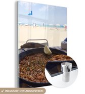 MuchoWow® Glasschilderij 160x120 cm - Schilderij acrylglas - Zeevruchtenrijst gekookt in een brandhou. Paella is een van de traditionele gerechten van Spanje - Foto op glas - Schilderijen
