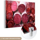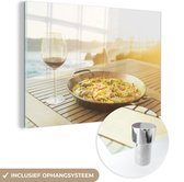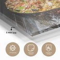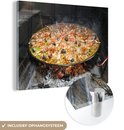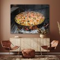 Glasschilderij - Zeevruchtenrijst gekookt in een brandhou. Paella is een van de traditionele gerechten van Spanje - Woonkamer - Slaapkamer