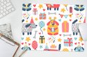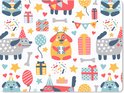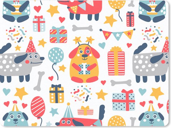 Over de fotoprintEen verjaardagspatroon met honden en cadeaus..