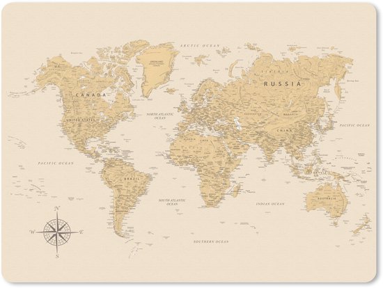 Muis mat - Wereldkaart - Realistisch - Beige - Mouse pad