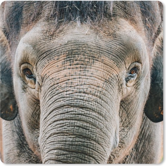 Muismat XXL 40x40 cm - Bureau onderlegger - Bureau mat Olifant - Portret - Dieren - Grijs - Bureaumat - Gaming mousepad xl - Bureaulegger groot - Computer deskmat